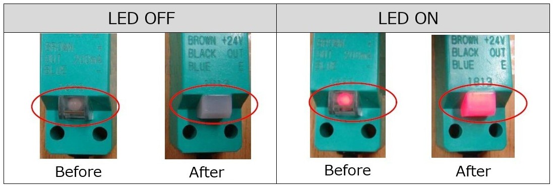 For products manufactured in or after January 2022, the LED indicator window has been changed from transparent to milky white.